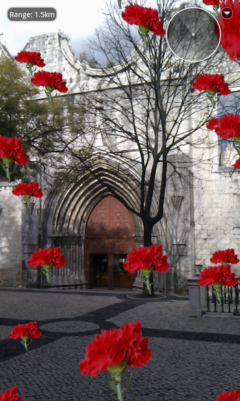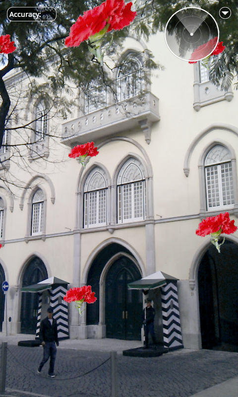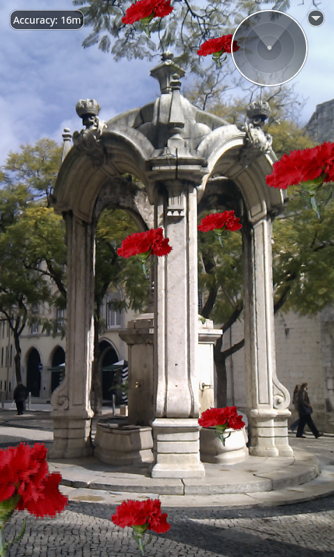 On April 25th, 1974, the "Carnation Revolution" broke out in Largo do Carmo (Carmo Square) in Lisbon, Portugal. A leftist military coup toppled the Salazarist dictatorship that had ruled Portugal for around 50 years, ushering in changes that brought democracy to Portugal. Celeste Caeiro handed out red carnations to the soldiers, who stuck them in their rifle and cannon barrels as a sign of their peaceful intent. These gave the largely bloodless coup its name, the Carnation Revolution, and her the enduring appellation, "the Lady of the Carnations." To commemorate this event I have created "Carnation Rain", an augmented reality (AR) artwork of an animated rain of carnations, placed via GPS in Largo do Carmo. To view the artwork: