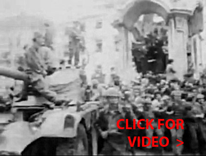 In Largo do Carmo in Lisbon, Portugal, an animated rain of carnations fills the square.