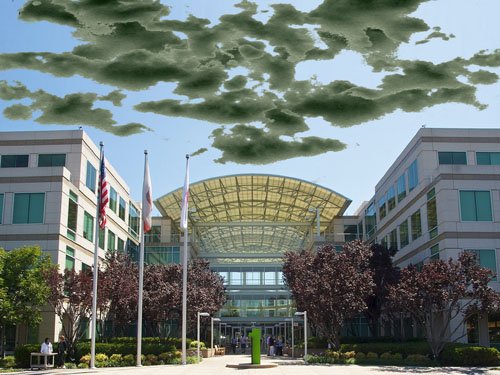 The augmented reality artwork “Clouding Green” floats a massive augmented reality cloud – in colors ranging from sooty carbon black to brilliant renewable green – over 8 major Silicon Valley cloud computing providers cited in the Greenpeace report “How Clean is