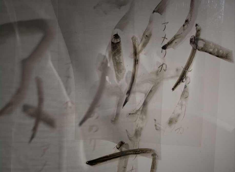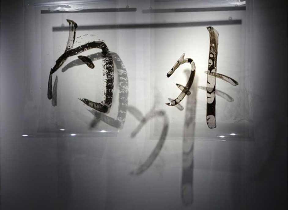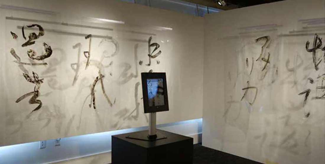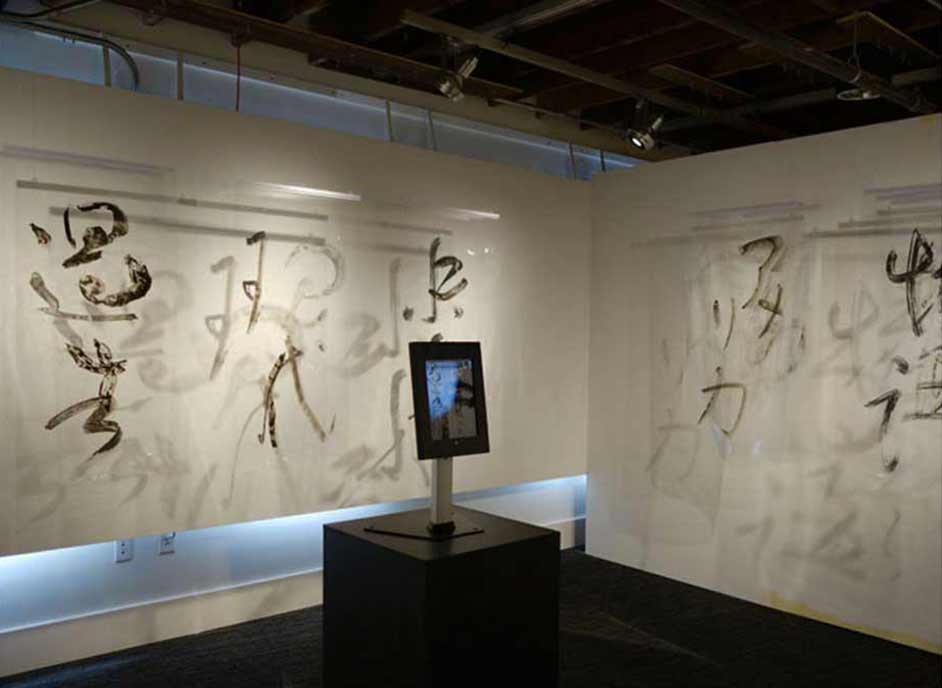 In the Wing Luke Museum, transparent wall hangings by Midori Kono Thiel emphasized the abstract nature of calligraphic art by deconstructing the strokes of Japanese characters across multiple parallel layers in non-traditional ways. The transparent layers and their shadows, stirred into motion by a slight breeze, invited visitors to regard each stroke in its own right (see video).