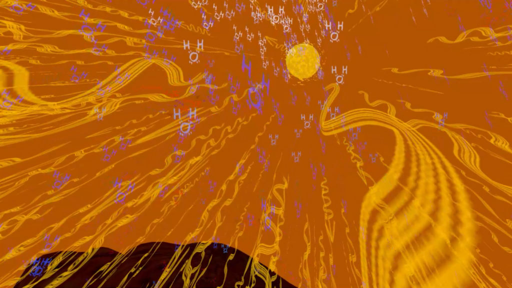 It is also a personal investigation to understand how the chemical elements - atoms - that predominate in the classical elements are involved in life-sustaining cycles. I use the beautiful Lewis dot structures that depict valence electrons bondings atoms together into molecules to visualize the invisible substances that make up the most important chemicals in the four elements. The visitors' interactions with the physical components of the installation - four bowls, containing representations of the four classical elements - release these Lewis structures into virtual spaces that show their effects and interactions with each other.