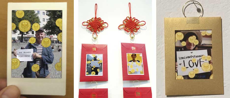 "Goldsegen (Golden Blessings)": engages and questions mechanisms of consumption and the commodification of happiness.
