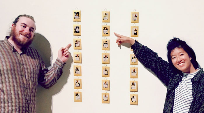 Caslon and Wendy pointing to their AR photos in the completed