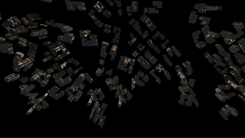 In a dark and dangerous back alley, the words of Darwish's poem let the child rise up out of confinement, high above the city. But the world turns upside down and the child is suspended between city and ocean waves.