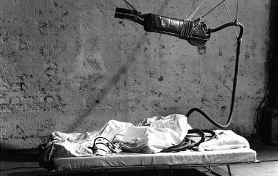 Mixed media found object & sound installation, 1988 (no longer extant)Created for "La Belle et la Bête," Project Daniel Spoerri